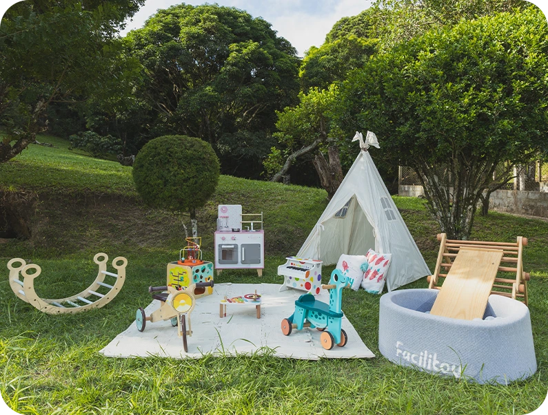 Uma brinquedoteca de aluguel feita sob medida para festas que desejam acolher crianças de 1 a 5 anos com segurança, propósito e muita imaginação.